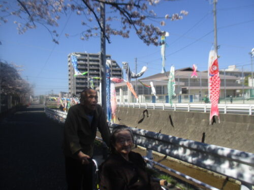 さわやかグループホームいいくら 未分類 桜見🌸 2025-04-08 2025-04-08 今日はいいくらメンバーで桜見に行ってきました。天気にも恵まれ、久々の外出ということもあり、皆さん大喜びでした。桜が満開でしたね。先どりの鯉のぼりも、空を泳いでいましたよ<゜)))彡