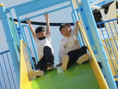 遊具で遊んだり、走り回ったり、追いかけっこしたりと