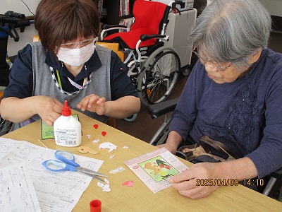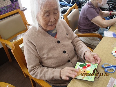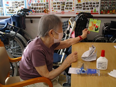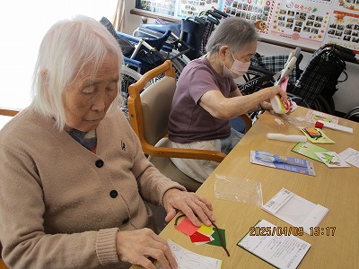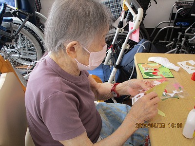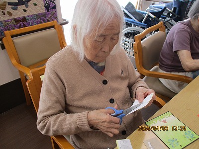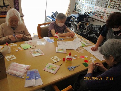 さわやかそう花の里 新たな取り組み 2025-04-09 2025-04-09 こんにちは 4月になり新生活が始まっている方も多いかと思います🎒 そう花の里では入居者様のリクエストで新たに手芸俱楽部を設立しました✨ ・・・と言っても手芸が得意な職員がいないため試行錯誤で進めてしまいましたが💦 初回は切って✂貼って❕「飾れるちりめん飾り」を作ってみました(⌒∇⌒) 思ったよりも難しい~😅 毎月1回。ちょっとずつではありますが出来ることをやっていきたいなぁと思っております💕 手芸って一言で言っても何をしていいか迷ってしまいますね💦 担当:白鳥