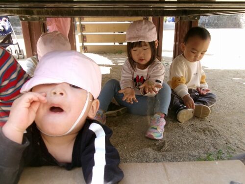 お手手もお洋服も靴も靴下も砂だらけですが、とっても楽しそうです!