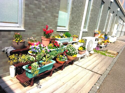 担当スタッフが毎日水やりをしているおかげで 綺麗な花を咲かせています。