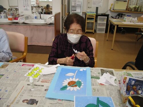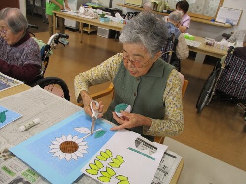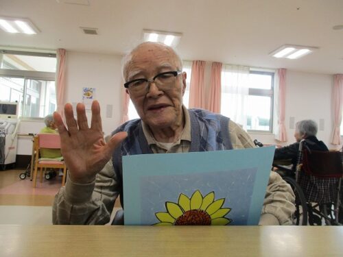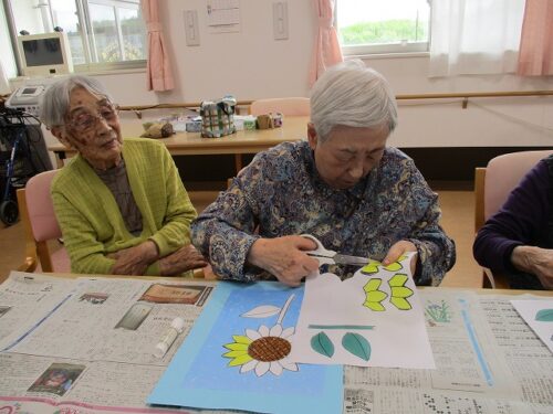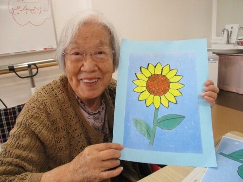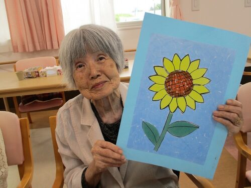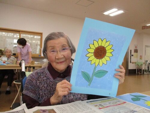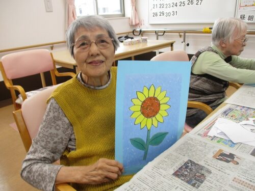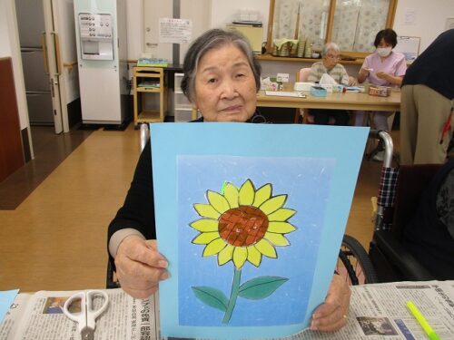 出来上がった向日葵は食堂の壁に飾らせていただきます!!