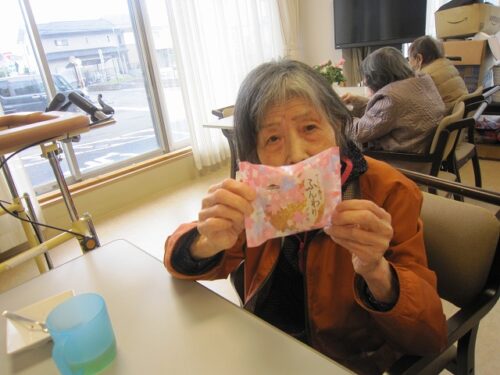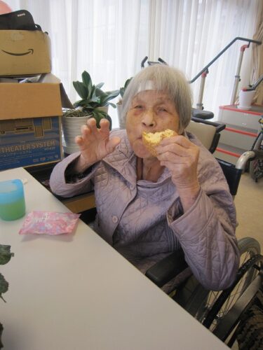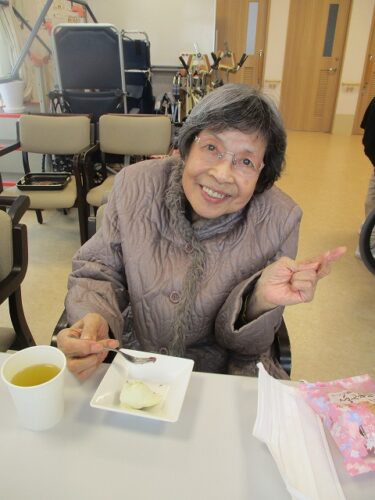 お天気が不安定だったので、施設に戻っておやつをいただきました。