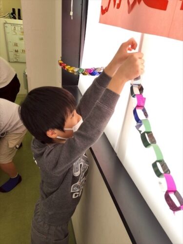 ガーランドは、文字を1人2つずつ書いて、ガーランドに貼り付けてもらいました✍️