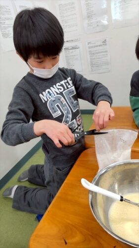 最初は役割分担をして、生地を作っていきます!