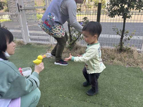 お母さんと離れるのが嫌で泣いていたお友だちも少しずつ慣れ笑顔も見られるようになりました❤️