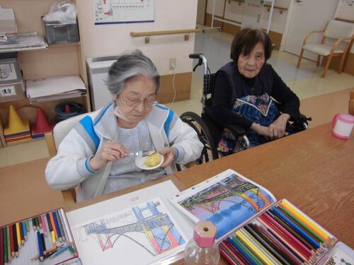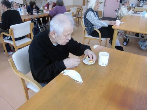 さわやかこすもす館 おやつです('ω') 2025-04-11 2025-04-11 こんにちはさわやかこすもす館です(^^)/ おやつは「さつまいもと林檎のケーキ」でした(´艸`*) おいしいですね~(^^♪ ごちそうさまです(^_-)-☆ 担当:能塚☺
