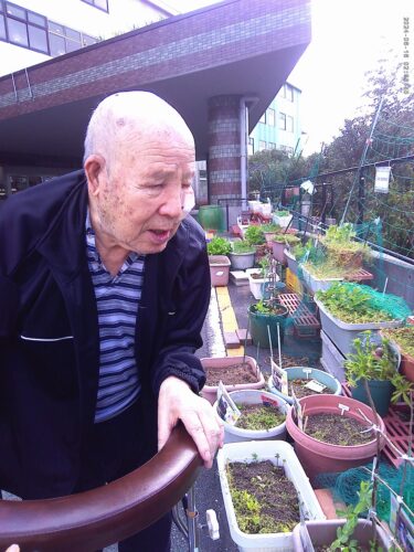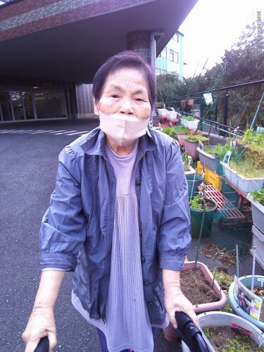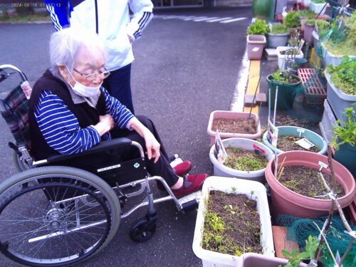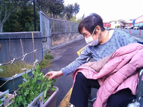 暖かくなったので冬に植えた野菜の様子を見に3階入居者様が玄関に来て下さいました✨