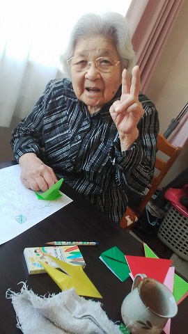 お部屋で塗り絵をしたり折り紙をして