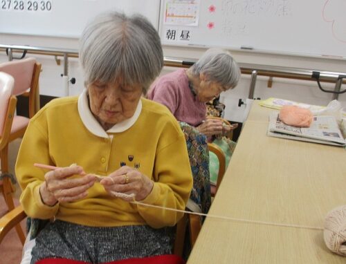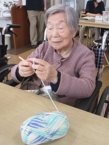 今日は、先日行った「編み物レク」の様子をお伝えします!