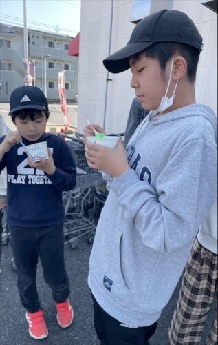 子ども達自身で、券売機で買いたいものを買い、トッピングの注文もしてもらいました✨