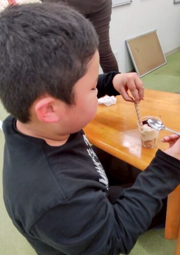 自分で作ったアイスパフェはとってもおいしそうでした。