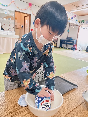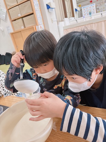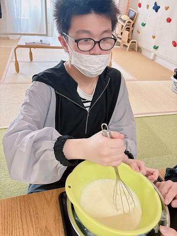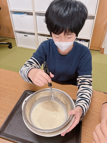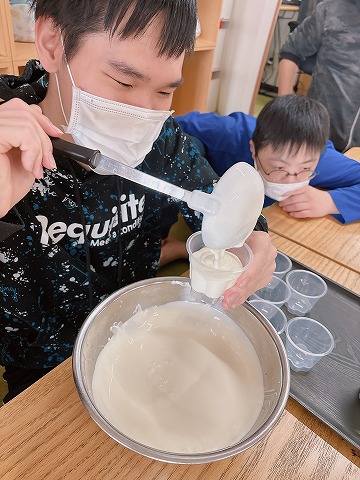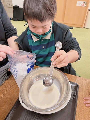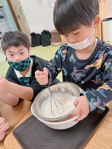 ツノが立つまで職員も協力しながら混ぜていきました😊