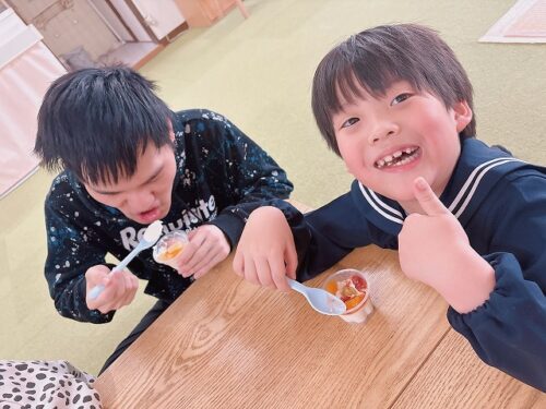 フルーツやイチゴジャムなどを加えてみんなで食べました🍓