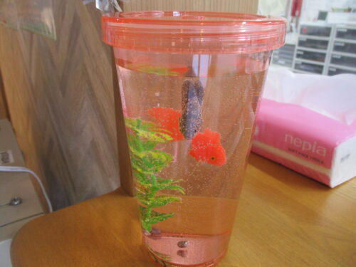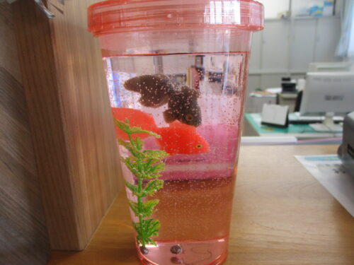 玄関のカウンターに置いてある金魚の置物です(*^^*)