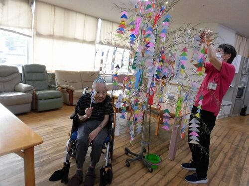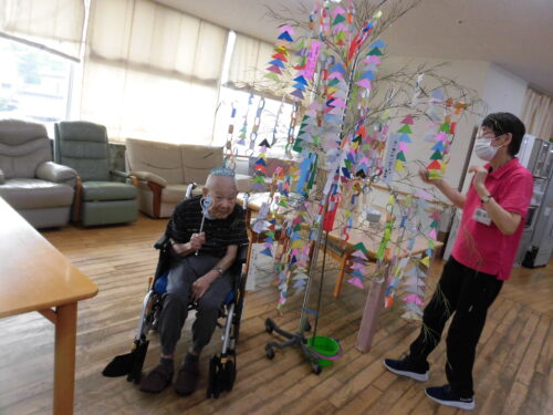 🌌🎋3階フロア🎋🌌(入居者様が頑張って飾って…後ろに天の川も見えますね🌠)