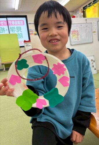 貼り付けたら春のリースの完成🌸🍀