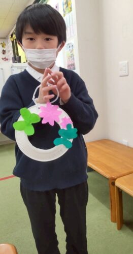 この日は桜とクローバーの春らしいリースを作りました。