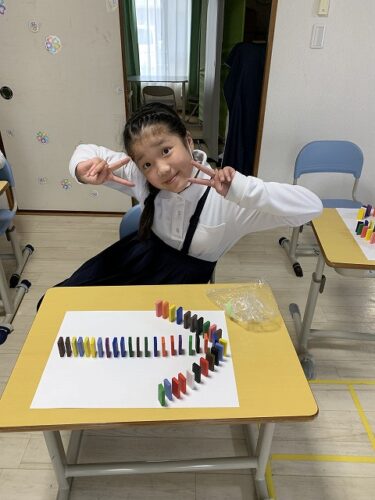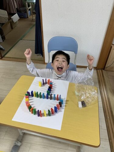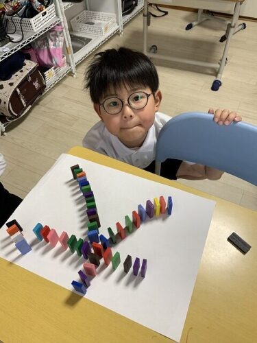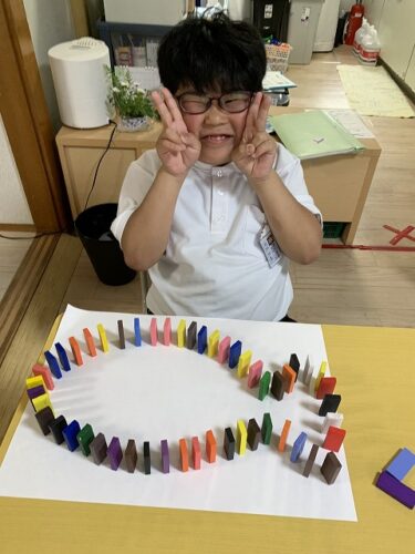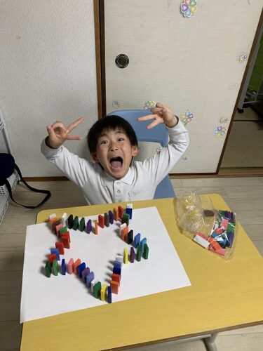 時々ドミノが倒れたら「あーーーーっ!!!」という声が上がっていましたが、子どもたちはかなり真剣に取り組んでくれました。「ティットゥ、ティットゥ、、、」が効いたような^^