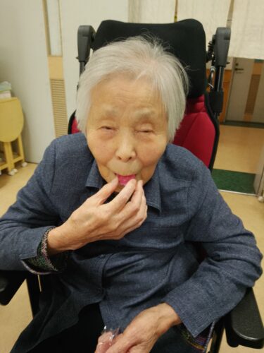 今年12月で98歳になりますがいつもスタッフに「ありがとうね」と労いの言葉をかけてくれます。