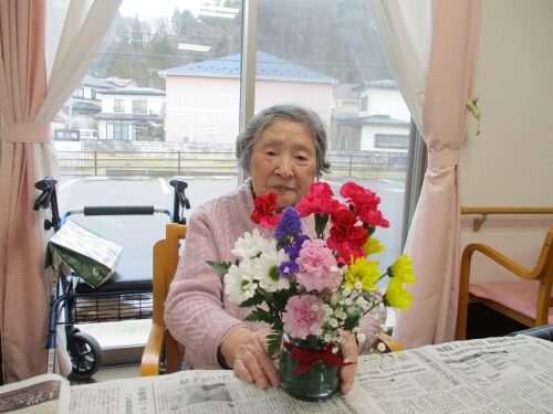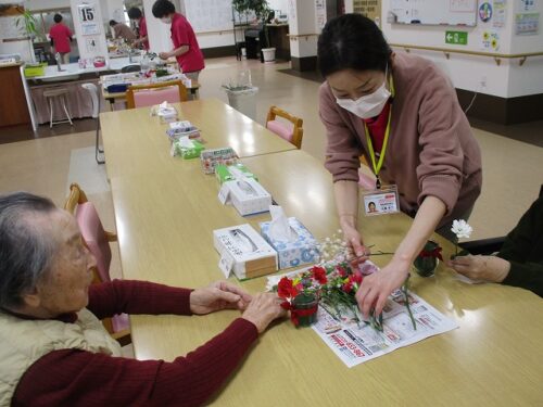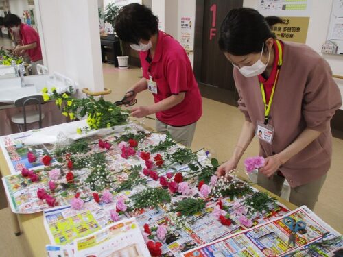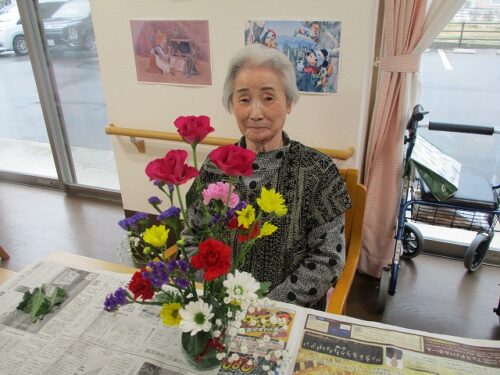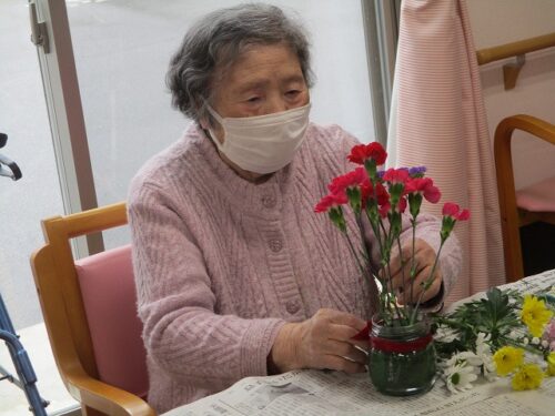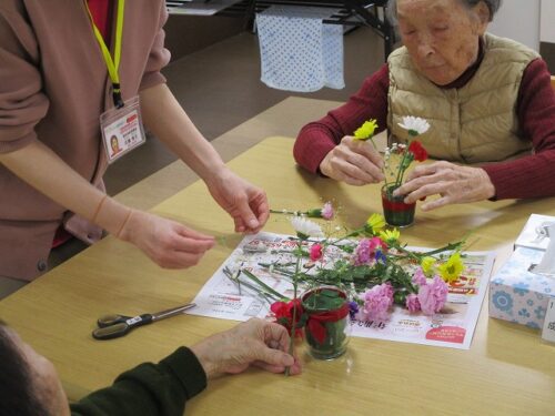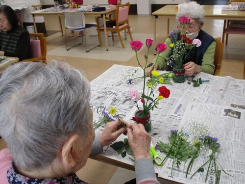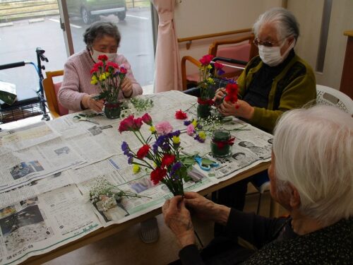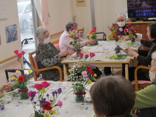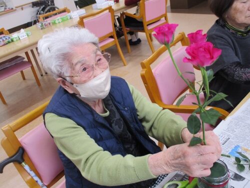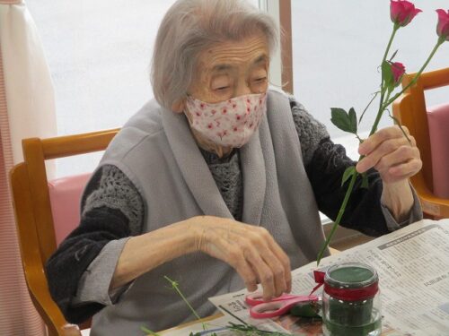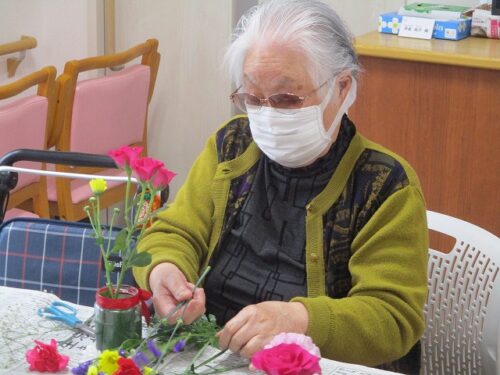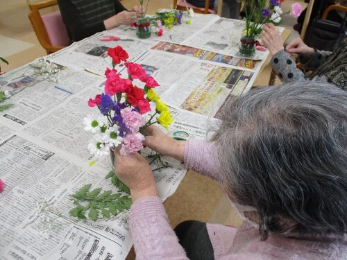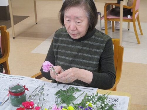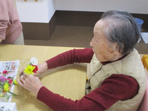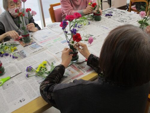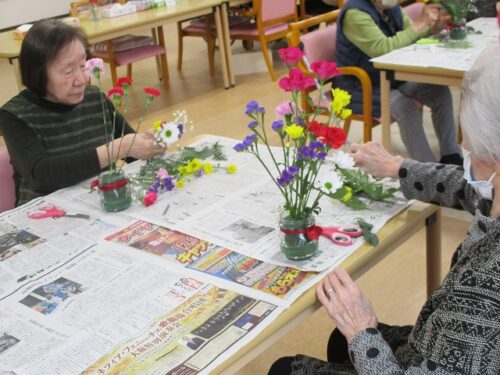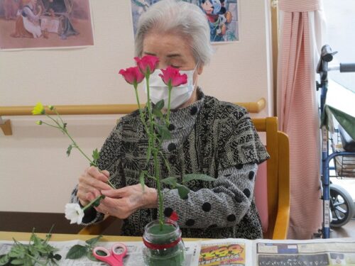 今日は午後から生け花レクリエーションがありました。