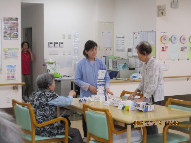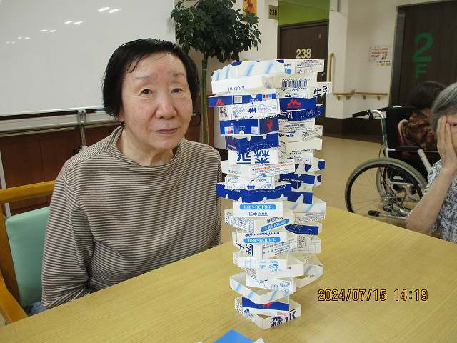 さて、2階では手作りジェンガに挑戦!
