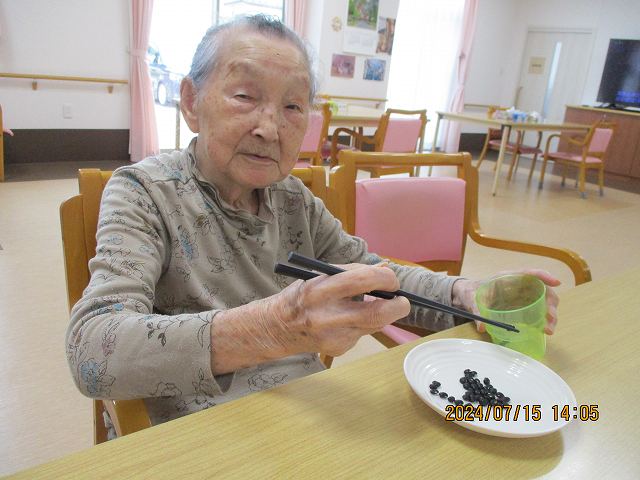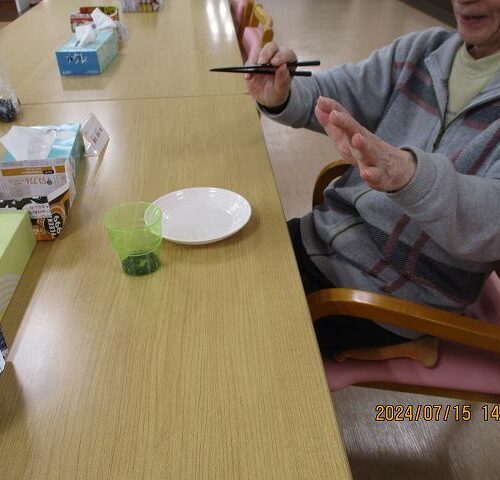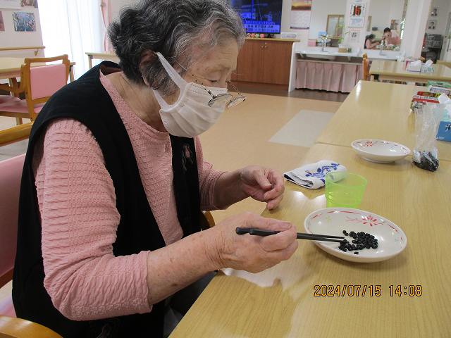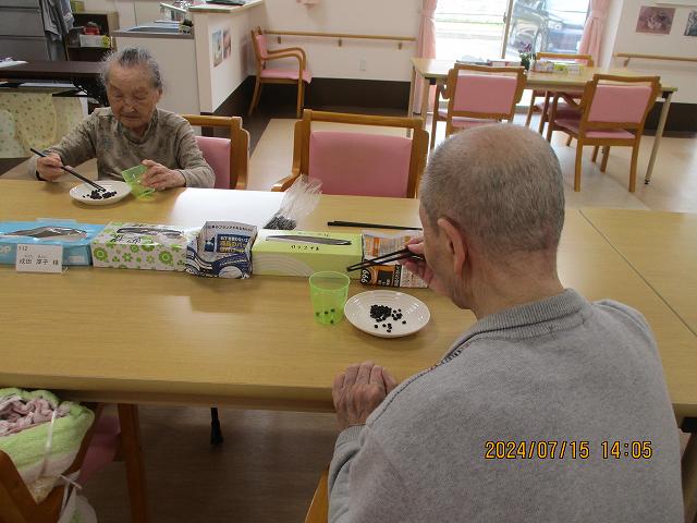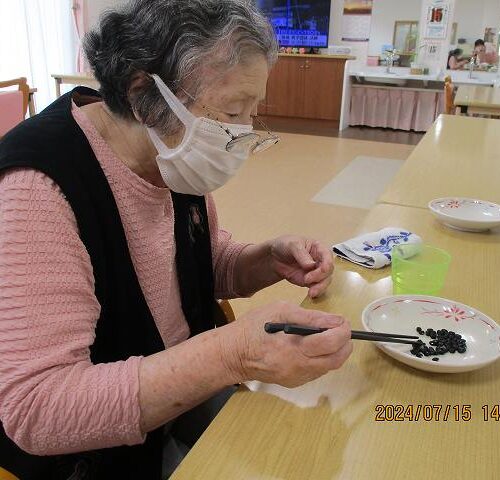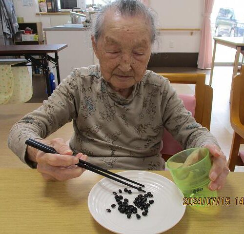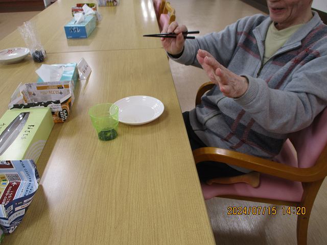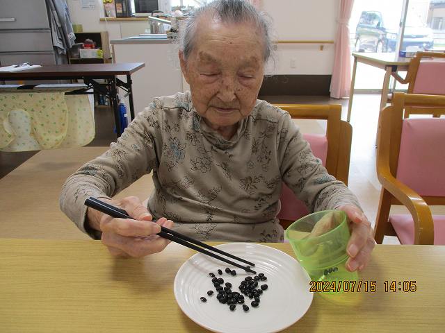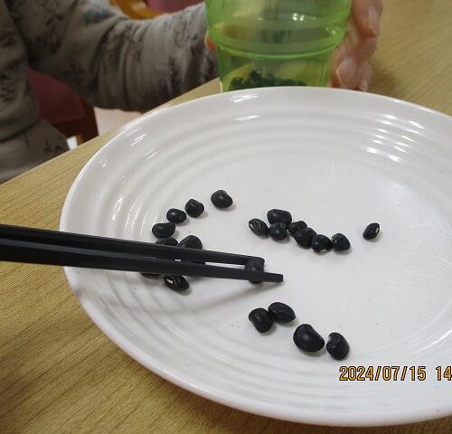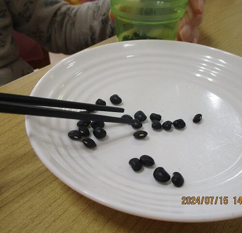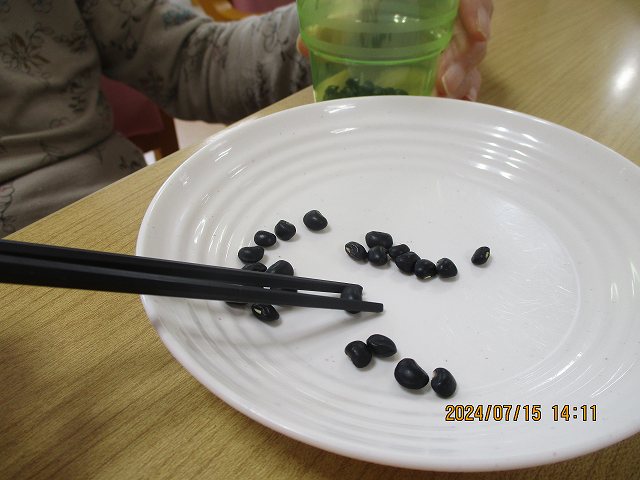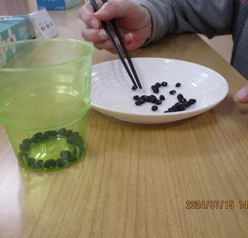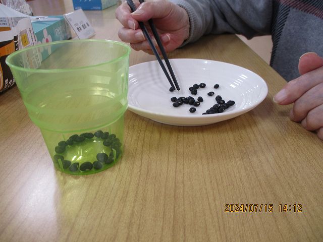 豆を箸で移すという何ともストイックなリハビリ&ゲーム