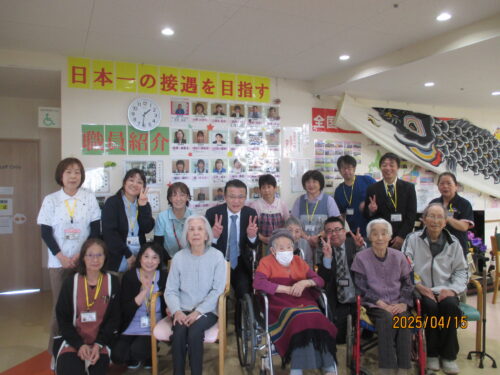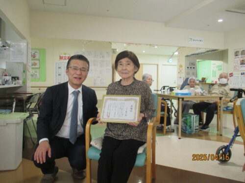 さわやかさの館 山本社長来館 2025-04-15 2025-04-15 本日北九州の本社より山本社長来館され、入居者様とお一人様づつ写真撮影を行いました。 入居者様写真撮影時皆様笑顔で写って頂きました。 最高齢の入居者様の表彰して頂きました。 SS利用の入居者様のお誕生日のお祝いを山本社長よりして頂きました。 担当渡邉 Digital Camera
