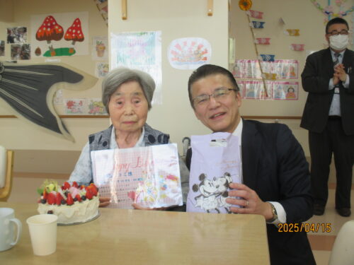 SS利用の入居者様のお誕生日のお祝いを山本社長よりして頂きました。