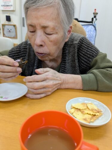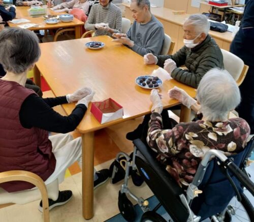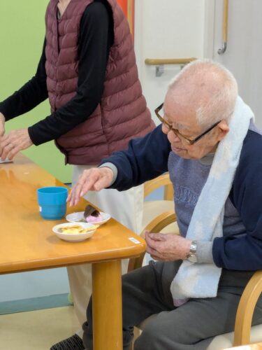 上手に出来上がりました。そのあとコーヒーや紅茶でみんな美味しそうにパクパクと( ´∀` )