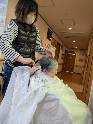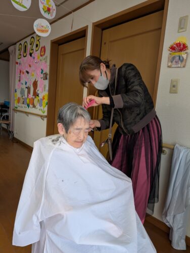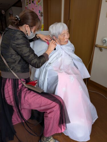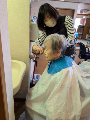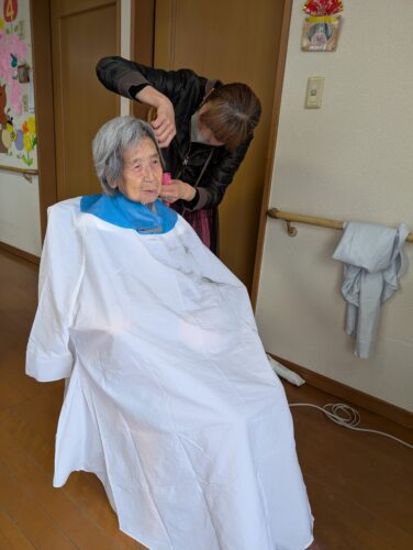 さわやかグループホームあゆみ ☆恒例行事☆ 2025-04-23 2025-04-16 毎月の高齢行事、訪問美容です。 カットしてもらってとってもさっぱり^^ カットの最中はちょっとくすぐったい顔をしていますが 終わるとすっきり^^ すっきりしました