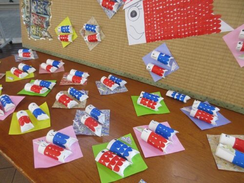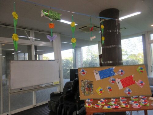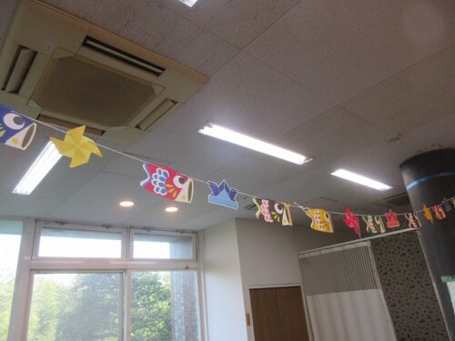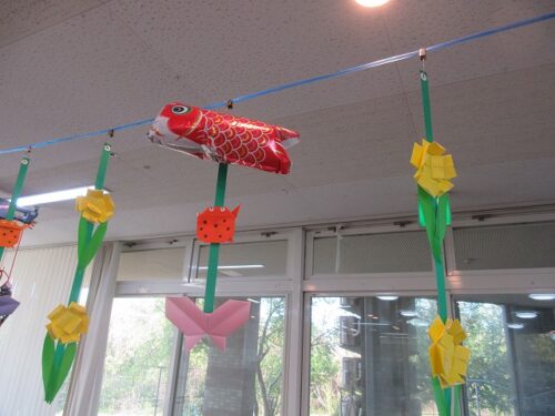先日制作で作った鯉のぼりも飾らせて頂いてます。