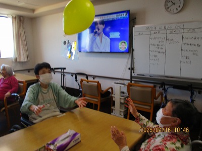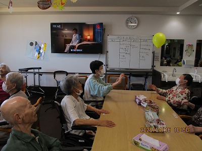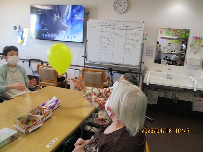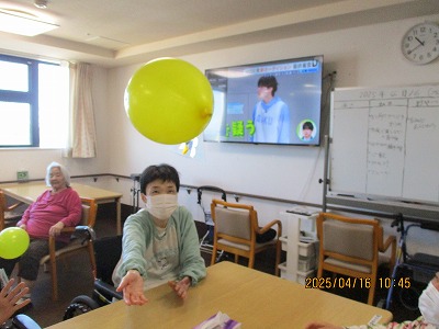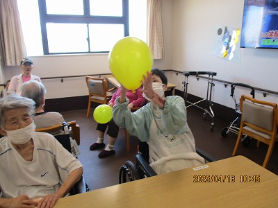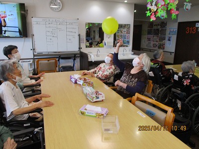 今日のレクリェーションはみんな大好き風船バレー🎈
