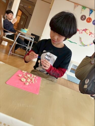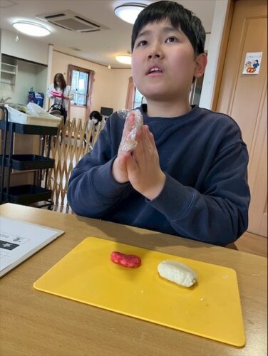 今日はさいだいじ館の児童の4月生まれの児童達の誕生日会の為に小麦粉粘土でケーキ作りをした活動の様子を紹介させて頂きます!