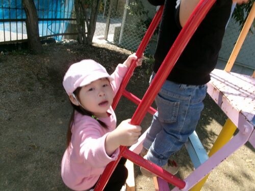 「せんせい、すべり台暑くない?」