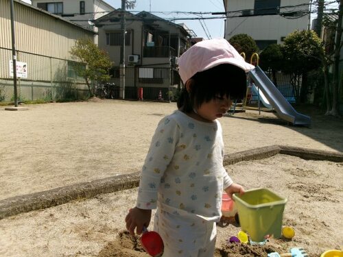 砂場の日陰でお砂遊び中…