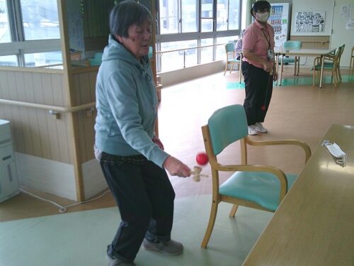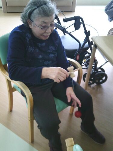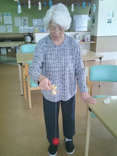 さわやか室蘭館 2Fけん玉挑戦中♪ 2025-04-17 2025-04-17 皆様こんにちは! 本日は、2Fの午後の様子をご紹介します('ω') むかしなつかしけん玉に挑戦です! 集中です! 感覚を掴むまでなかなか難しいですね(#^^#) 久しぶりのけん玉楽しかったですね♡