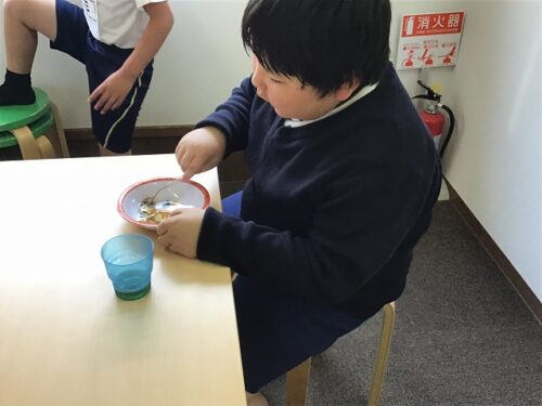 今日はおやつレクで餃子の皮を使ってチョコ包み焼きを作りました🥟