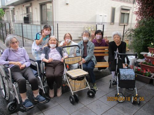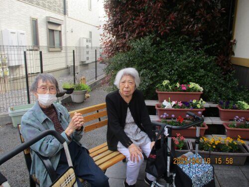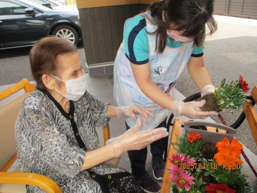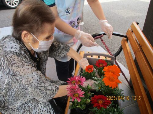ご入居者さまがプランターにお花を植えてくれます