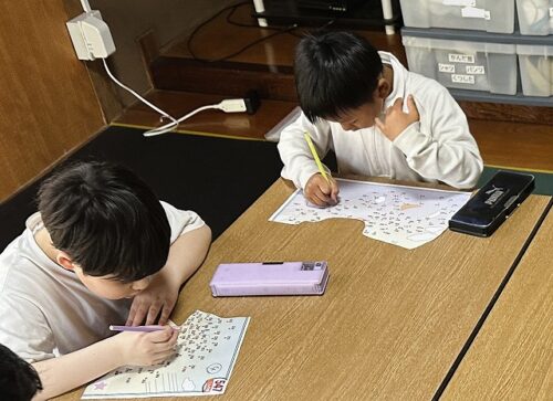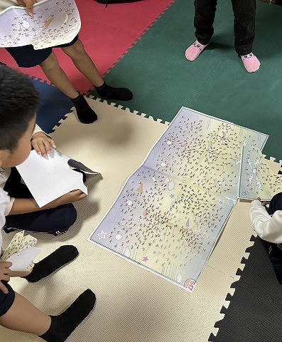 皆で一つの点繋ぎのプリントを行いました。