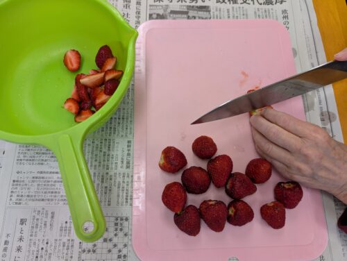 入居者様にイチゴを4分の1に切って頂いたのですが・・・!?