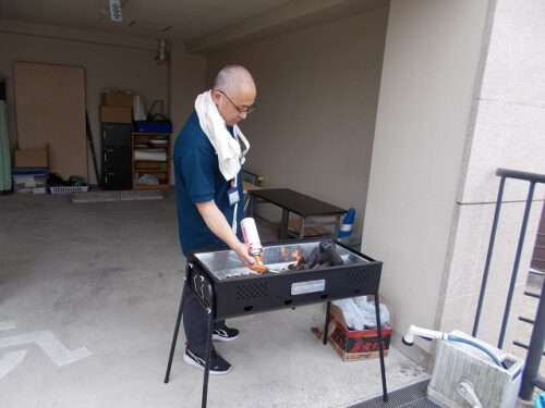 バーベキューコンロで焼き、おやつに召し上がっていただきました。