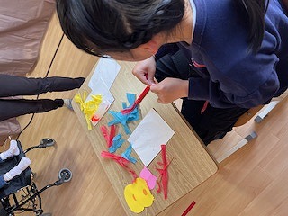 フラワーペーパーを細くちぎって卵をつくってるんだね🐣✨✨