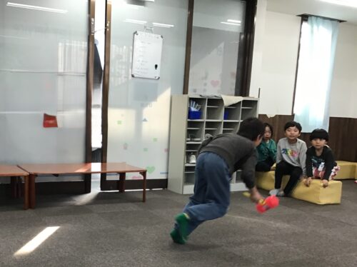 最後は~ピコピコハンマーを真ん中に置き、勝った人がハンマーをとって追いかけて捕まえます