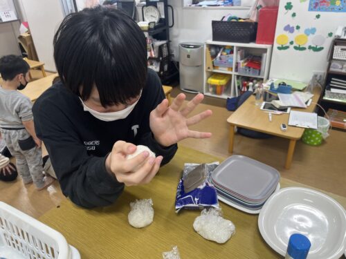 おにぎりは鮭と塩、のりたまを用意しました‼️