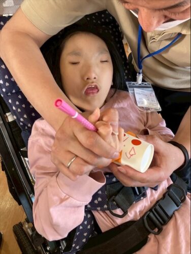 職員と一緒に自分で好きな色のペンを選び絵を描いたり🎶