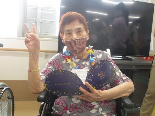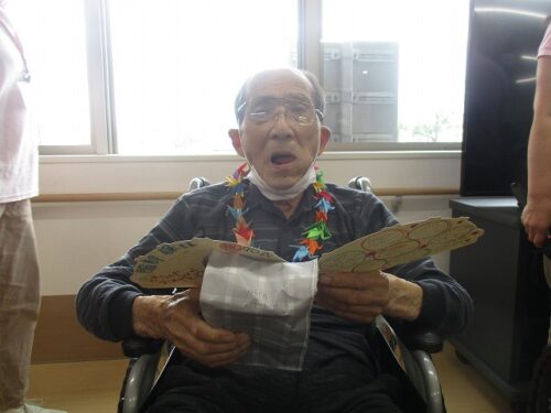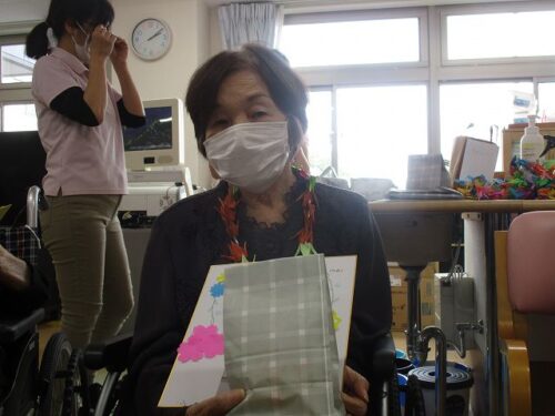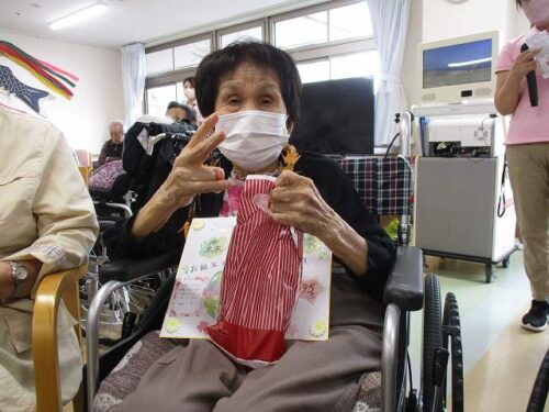 大勢の入居者様、職員からお祝いをされ、嬉しそうでした。