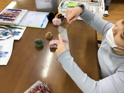 こちらの利用者様は、毛糸をくるくる巻いてボンボン作り♪