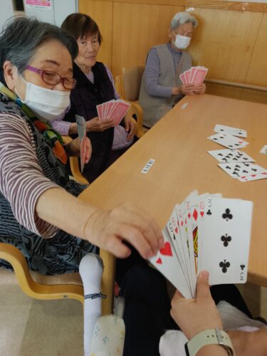 施設でブームとなっている トランプゲーム ババ抜きが本日も始まりました (´▽`*)