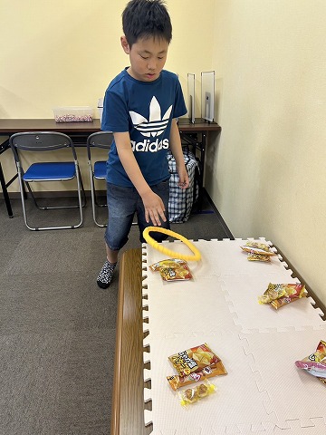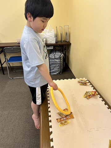 今日のお楽しみは『お菓子わなげ』です。